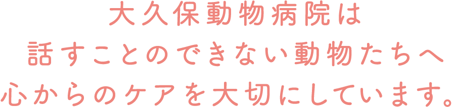 大久保動物病院では、そこにある“問題”の原因をつきとめ、それに対しての治療をどれだけ、どういう方法で行うのか、飼い主の方と十分な話し合いをし、飼い主の方に納得していただける獣医師療を行うことを大切にしています。